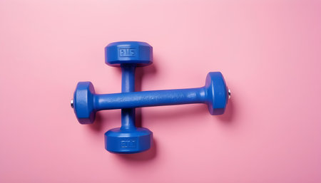Pink dumbbell blue background
