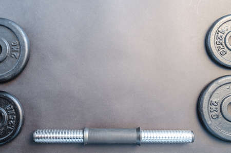 Set for lifestyle design. Sports background. Fitness background. Gym equipment background. Advertisement concept. Fitness workout. Power concept.