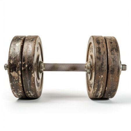 The photo shows a dumbbell on a white background