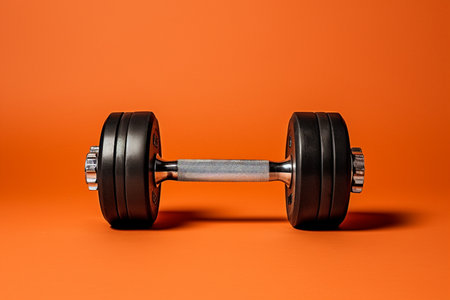 A pair of dumbbells on an orange background