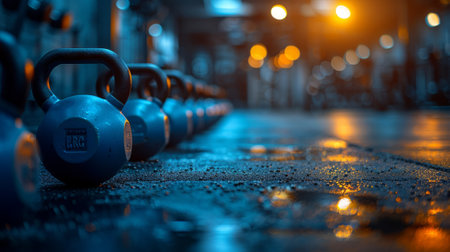 organized dumbbells and kettlebells in a gym, representing fitness and strength training, great for background concepts