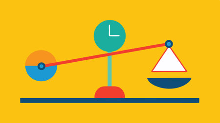 An image showcases a clock integrated into a scale, with activities like work, family, and leisure represented on the clock face. The composition uses a mix of colors and textures, set against a blurred sky background. It could be used for articles, presentations, or various other commercial applications.