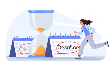 Concept of deadline and time with sand clock and white board written with Deadline.