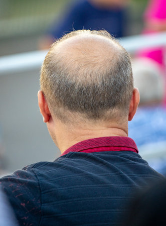 Close up of a bald man's head with hair loss problem.