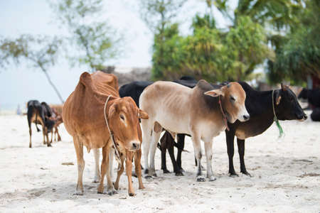 Zanzibar City, Tanzania-January 02,2019: Cows from local farms roam the beaches of Zanzibar Island freely.
