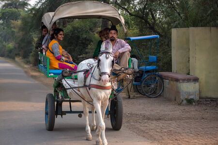 Visitor riding in a horse cart in Keoladeo Ghana National Park, Bharatpur, India.