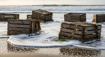 An aerial view of an abandoned boat resting on a polluted shoreline showcases the urgent need for environmental conservation. Litter and debris line the beach, highlighting human impact on marine ecosystems.
