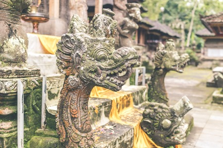 Shot inside famous Balinese Temple Titra Empul close to Ubud, Hindu statues in the Titra Empul Temple in Ubud on the island of Bali