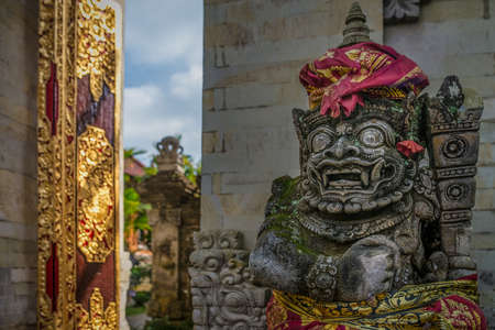Hindu stone statue in the balinese temple. Tropical island of Bali, Indonesia.