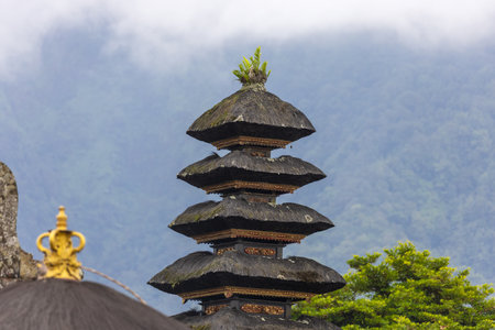 Bali, Indonesia - March 24, 2017: The ancient pagodas of the Ulun Danu temple on the Beratan lake riverside