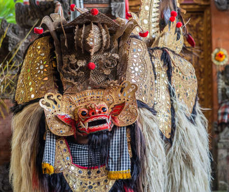 Wooden carved mask of Barong used for ceremonies in Hindu temple in Bali-Indonesia