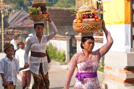 Gianyar - MAY 21: The villagers dressed in traditional costume. Balinese Temple Festival Odalan. May 21, 2011 in Gianyar, Bali, Indonesia.