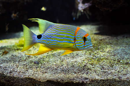Exotic fish. Underwater image of colorful fish. Colorful fishes in aquarium.