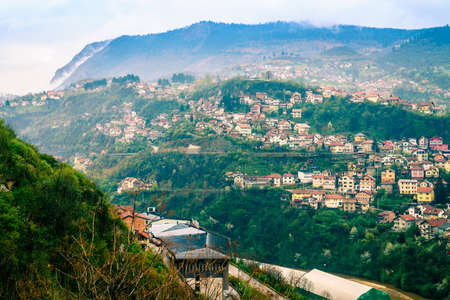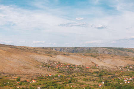 Green fields and village houses in the vicinity of Niksic. Montenegro