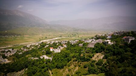 Aerial panoramic view to Gjirokaster city in Albania
