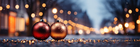 Christmas background. Christmas balls on the street. New Year concept.