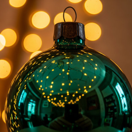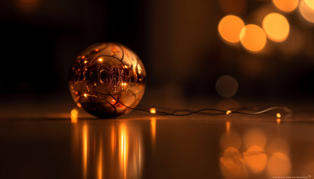 Golden sphere glows with heat, reflecting vibrant Christmas decor generated by artificial intelligence