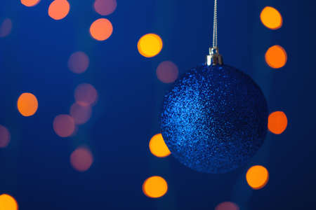 Blue christmas ball on bokeh background. Christmas decoration.