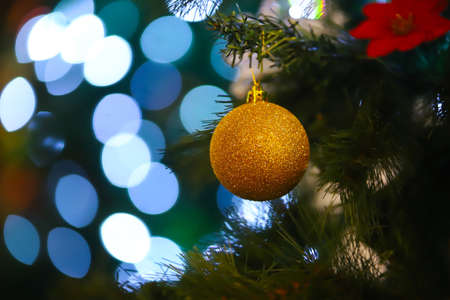 Christmas ball on bokeh background. Christmas and New Year concept