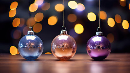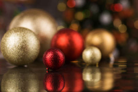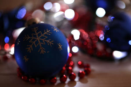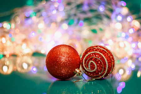 Christmas ornaments on bokeh background, Merry Christmas and Happy New Year