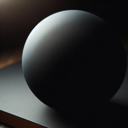 A smooth purple sphere sits alone on a textured blue surface. The lighting gently highlights its curves, creating an inviting and tranquil atmosphere.