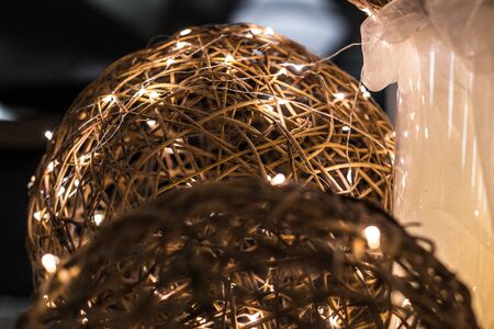 Christmas decoration, Christmas and New Year holidays background, winter season with Christmas ornaments and blurred lights