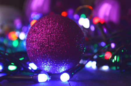 Colorful christmas balls on bokeh background. New Year and Christmas concept.