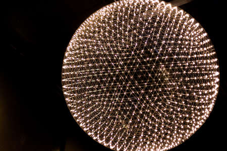 Big circle globe light like earth planet star in space or universe hang on the ceiling. in dark or black background.