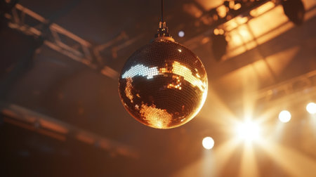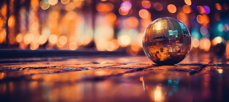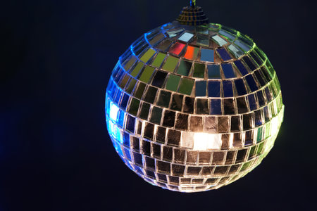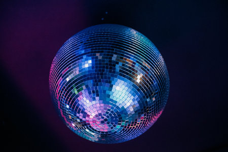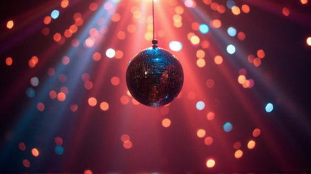 Vibrant disco ball reflecting lights, creating a dynamic party atmosphere for celebration