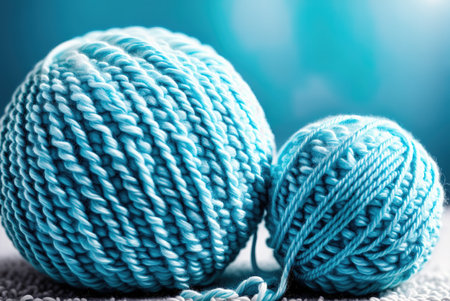 Close up view of blue yarn ball on blue background