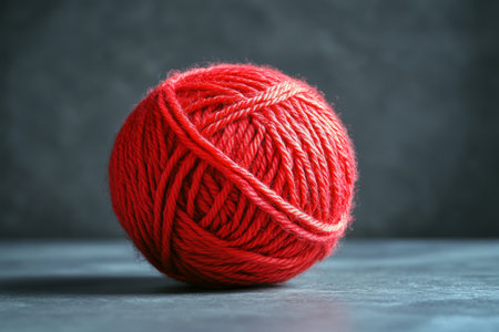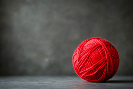 Crafting inspiration with a red ball of yarn set against a gray background capturing simplicity and texture