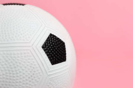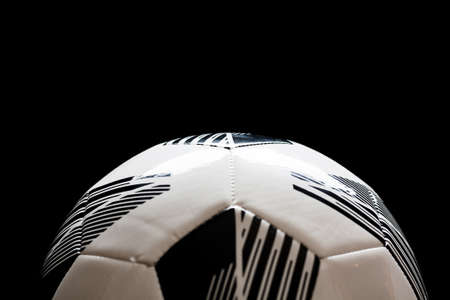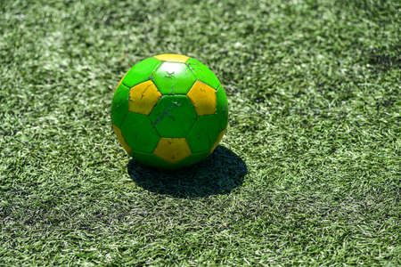 Soccer ball on a green background in bright light. The concept of the popular ball game.