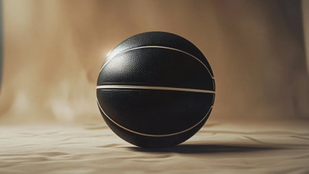 A uniquely designed black-and-white basketball, perfectly split into contrasting halves, symbolizing balance and duality. The textured surface and cinematic lighting enhance the artistic appeal, making this image ideal for themes of sports, philosophy, and design. The warm, blurred background adds depth and focus to the subject, creating a visually striking composition.