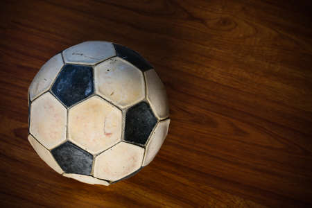 old football on wooden background, popular sport of the world