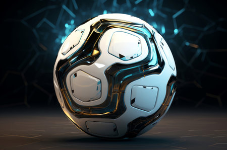 Blue metallic sphere on black background with hexagon pattern generated by artificial intelligence