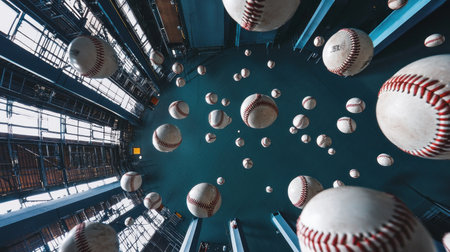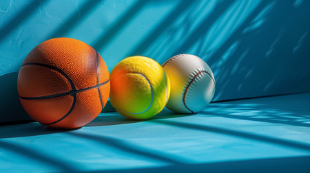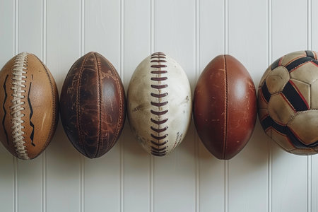 Close-up image showcasing a variety of sports balls, including basketball, baseball, and soccer ball, on a light surface. The high-detail textures emphasize cinematic sports symbolism.