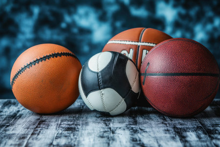 A collection of various sports balls arranged on a rustic wooden surface, showcasing the diversity in sports. Perfect for themes of fitness, leisure, and recreation.