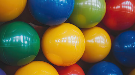 A close-up view of plastic balls in a rainbow of colors, stacked and reflecting light, giving a cheerful and energetic vibe. --chaos