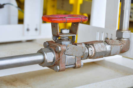 Valves manual in the production process. Production process used manual valve to control the system, Operator open and close or function the valve for controlled pressure or gas and oil flow rate.