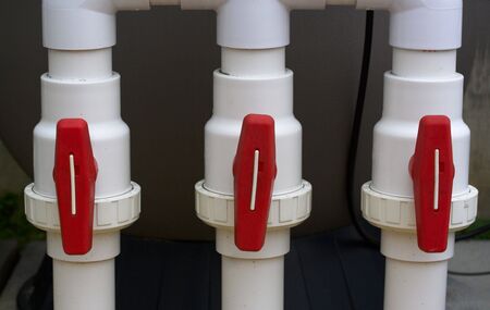A Wide Variety of Plumbing Valves Featuring Distinctive Red Handles for Easy Identification