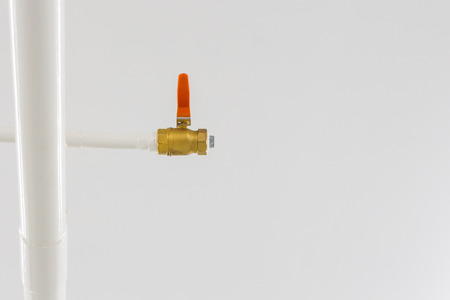 Connecting with close up redPVC plastic valve for supply water isolated on white background