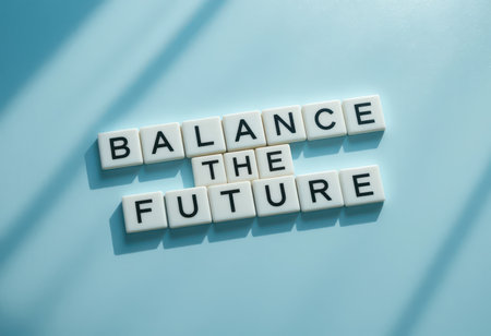 This image features letter blocks arranged to express the powerful message of balancing the future. Perfect for themes of inspiration, growth, and strategy.