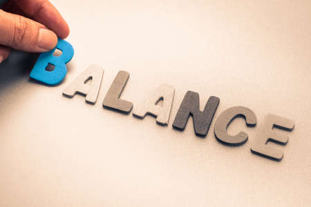 Word BALANCE made out of wooden letters on bright blue background. Motivational Words Quotes Concept. Inspirational phrase