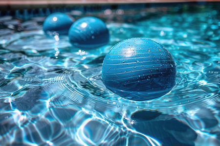 A bunch of colorful balls on a blue surface. The balls are of different colors and sizes, creating a playful and vibrant atmosphere