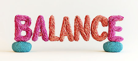 Balance Text Crafted from Knitted Fabric on Balancing Balls, Symbolizing Harmony and Wellness
