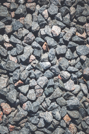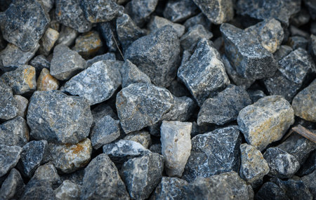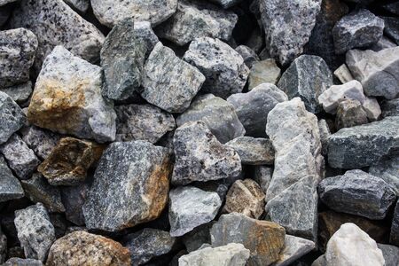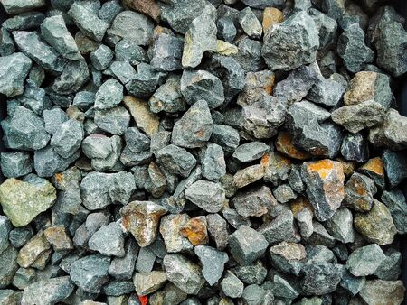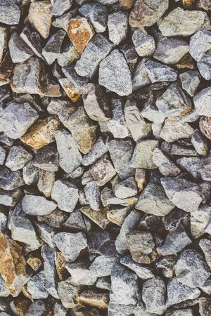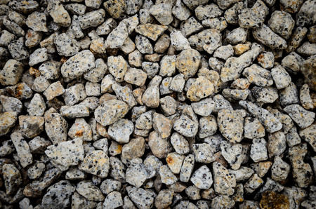 Close up top view texture background wallpaper of grey sharp pebbles stones arranged together on the ground