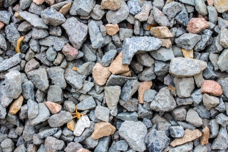 A close-up of different types of gravel, from fine pebbles to coarse rocks.