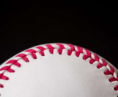 Close up of an old baseball with visible stitching on a black background. the ball is slightly tilted to one side, creating space for text or graphics in front. this design adds depth and texture to your website's banner section. it creates an atmosphere where sports fans can feel the energy and exc