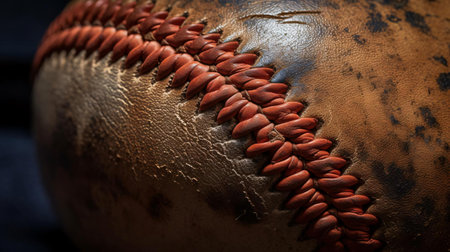 Closeup of old baseball with red stitching for background cool illustration generative ai