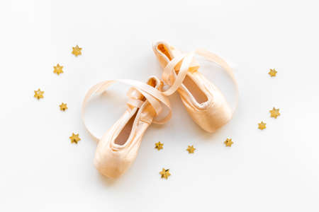Ballet dancer set of pointe shoes or slippers with ribbon